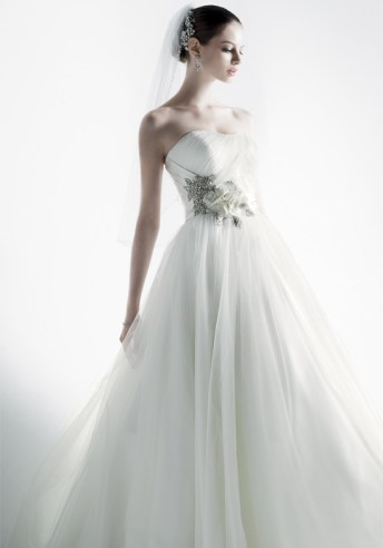 Take this dress of example. (It was removed from the David’s Bridal website and so the picture quality is… well you can see.) The corset is lovely and the pick-up skirt looks soft for once instead of ridculously poofy, and I don’t think it would be difficult to morph it into modesty.